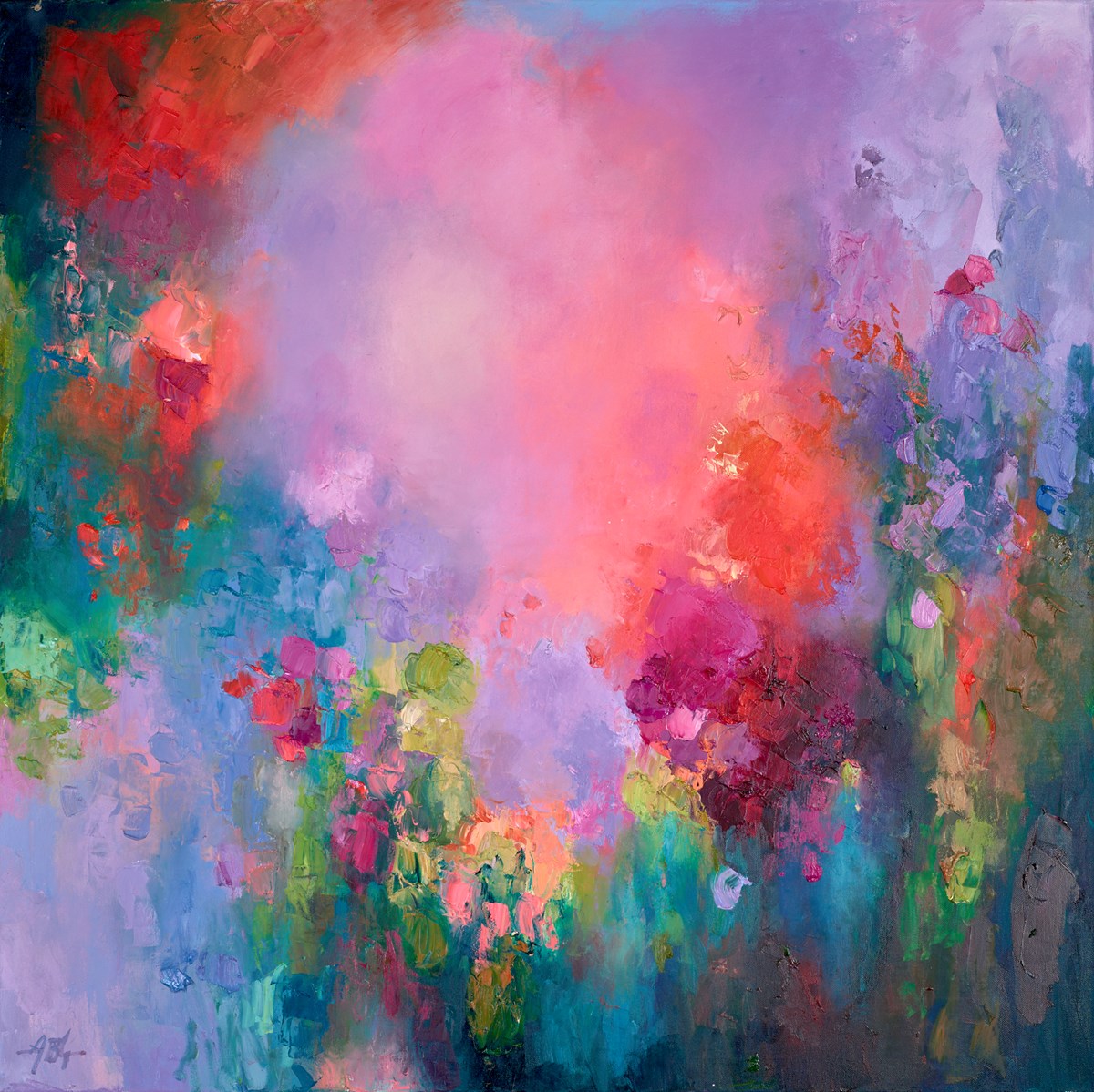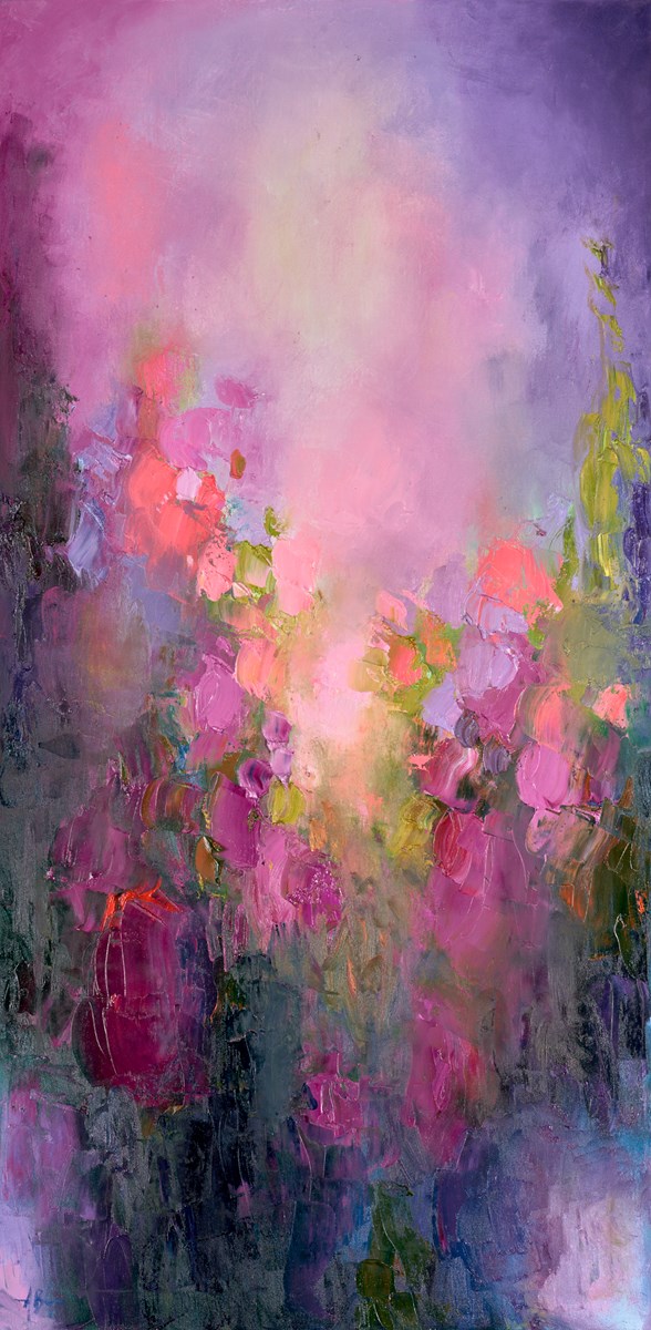 Anna paints intuitively, using an array of tools including brushes, sponges, palette knives and even her hands, letting her instinct take over. She has become increasingly dedicated to oils as her main medium, spending a great deal of time learning how they behave and can be manipulated. She does mix her media to a degree, using spray paint, metallic acrylic paints and inks to add interest and texture to some of her works.