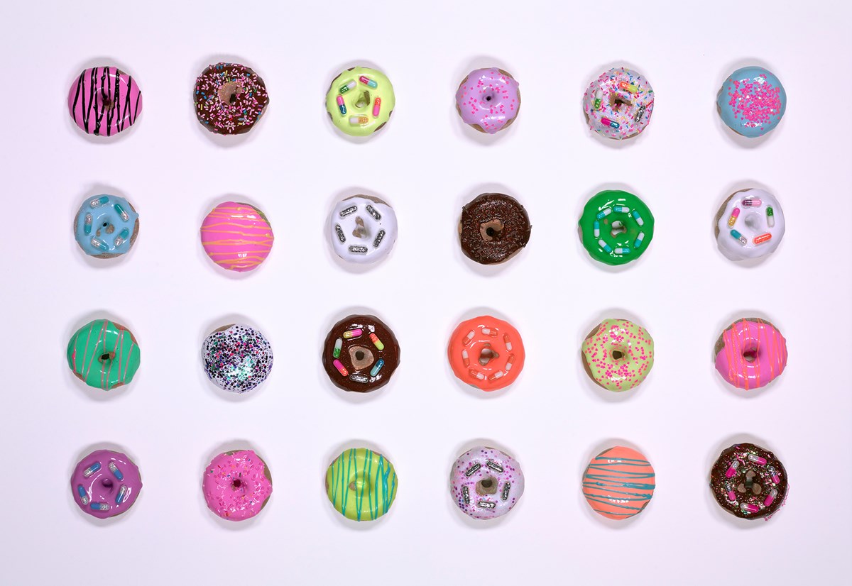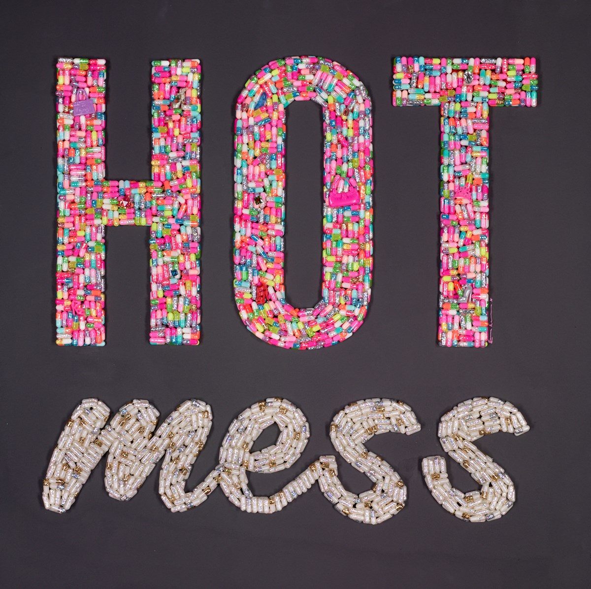 Now based in Devon, Emma creates dazzling artworks that balance bold colours with deeper themes of consumerism and excess. Her fascination with colour combinations and how they can spark joy is central to her practice and her aim is simple but powerful: to elevate spirits and leave a lasting impression of fun, energy, and wonder. From resin lollies to glittering pill capsules and framed feel-good slogans, her art is as joyful as it is thought-provoking, leaving a lasting impression on both casual viewers and dedicated collectors.