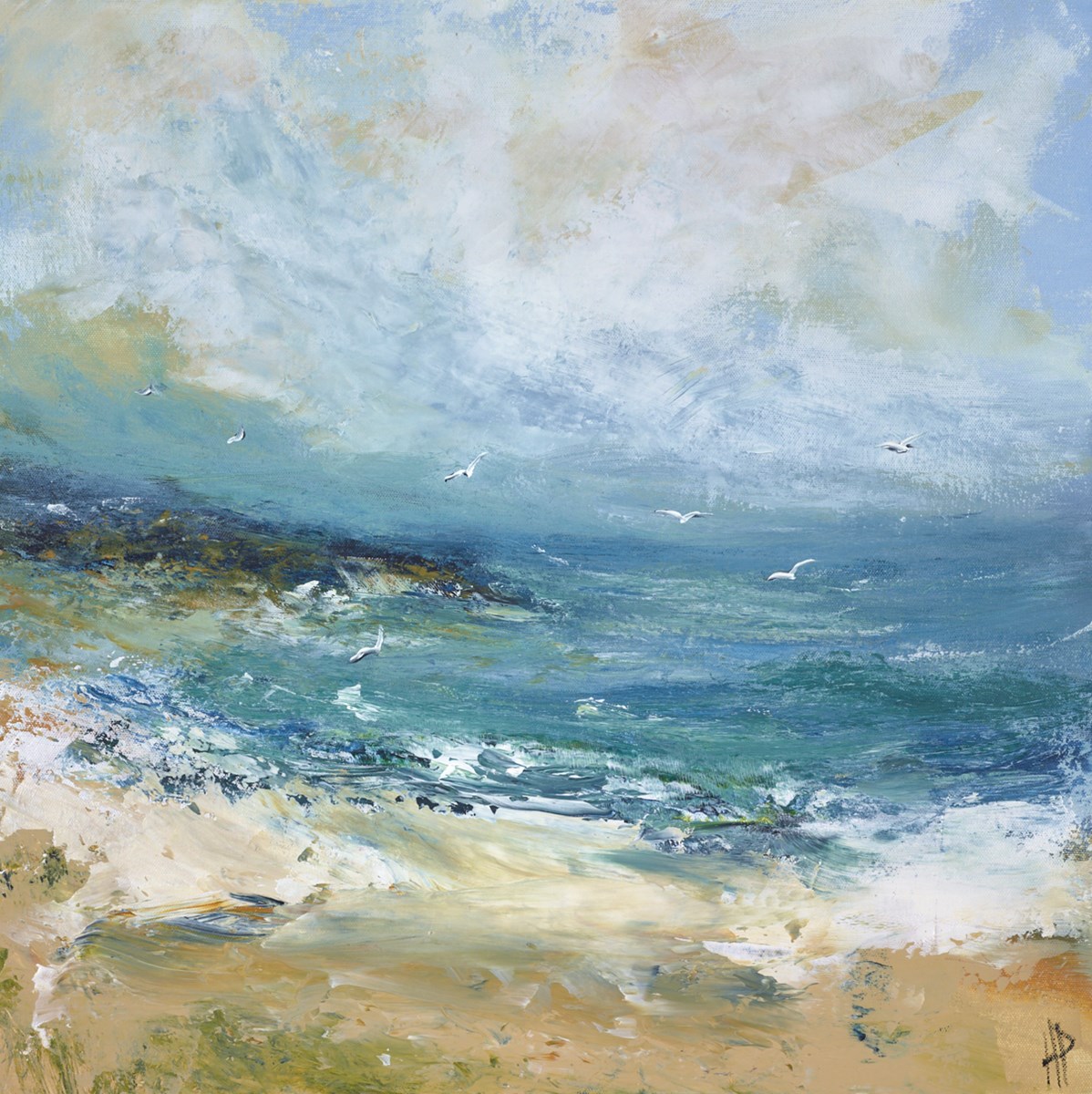 For nearly 20 years, Hudson has drawn much of her inspiration from the landscape around her home on the Sussex coast. Her expressive and beautiful seascapes transport us to a world in which land, sea and sky merge into a powerful vision of movement and light and while the location may be ambiguous, the sense of peace and wonder is completely clear.