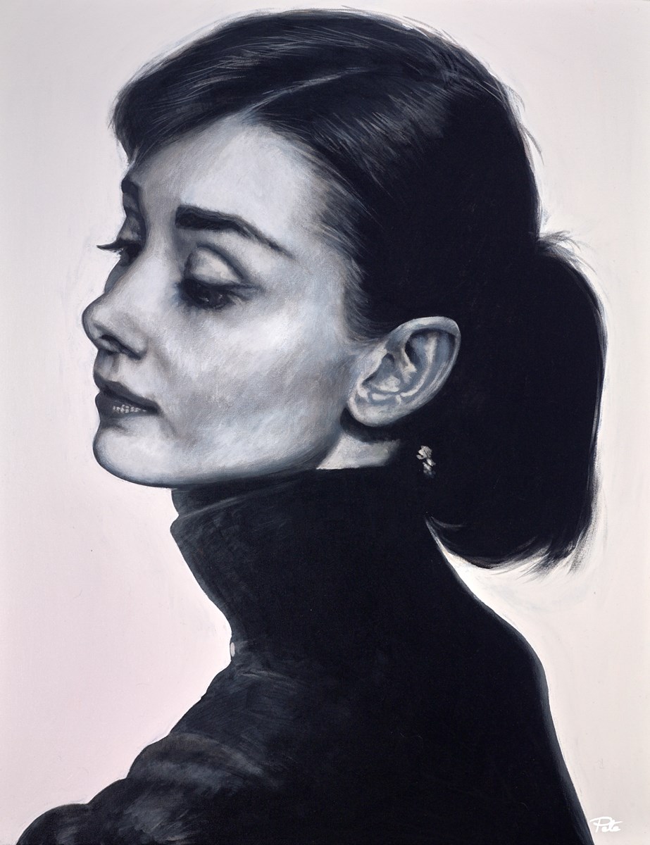 Pete Humphreys has always loved films and been fascinated by ways in which how the director uses the camera to frame atmosphere and intensity. Pete emulates this cinematic technique when he captures moments and composes scenes and portraits. He has long been inspired by the Impressionists and the way in which their loose brushwork blends into an image from a distance, but on a closer viewing dissolve into a mass of vigorous marks and strokes. He combines these two influences to create iconic portraiture that captures the essence of the subject as well as the precise moment that they inhabit, saying: “I search for subtlety, hidden glances and underlying motivation. I am not trying to fool the viewer into thinking that they are seeing a photograph, but rather am embracing the opportunity to interpret in paint while retaining a sense of honesty and accuracy.”