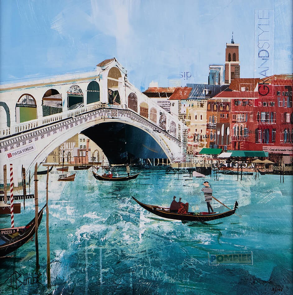 In 2004, Tom and his wife took a holiday in the South of France and visited a beautiful town called Uzès. He was mesmerised by the light, colour and textures - the bright awnings and parasols amongst weathered stone buildings, shuttered facades and crumbling masonry and 'les publicités anciennes' - huge, faded adverts from bygone days that used to be hand painted onto the sides of buildings. Tom says: "Maybe this is where my attraction to having text within a painting began.” Over the years travel has continued to be a strong influence on him, from Paris (where his wife is from) to New York, Havana and of course Venice. He loves to travel and discover new places and has recently been inspired on the Cornish coast.
